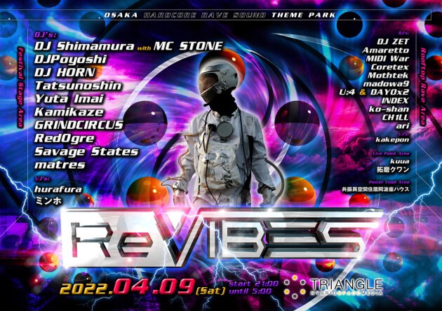 面白い事に貪欲な大阪のシーンを騒がせた、最幸級HARDCORE RAVEパーティ"ReVIBES”が、満を時して復活!