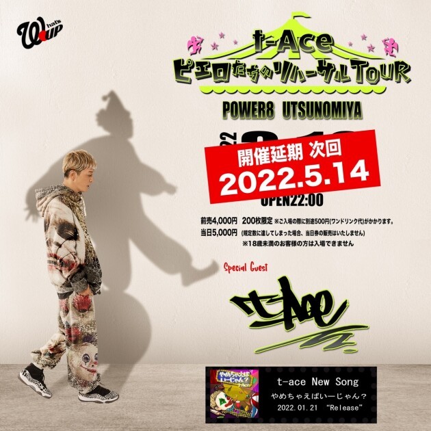〜t-Ace ピエロたちのリハーサルTOUR〜栃木振替延期再公演 延期日程のチケットは発売時期など再度SNS等で告知させていただきます ご了承ください よろしくお願い致します。