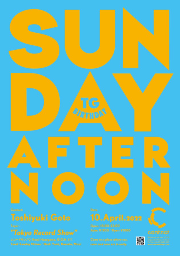 The concept of Sunday Afternoon is that it’s a party that everyone can enjoy and feel at home at regardless of their sex, color or race. For the past 20 years, Toshiyuki Goto has been hosting in NY and Tokyo and is playing an exclusive 5 hour set filled with funky and spiritual grooves. Bring your loved ones, children and family.