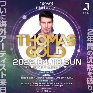 音箱として最前線を走るclubJOULEが『THOMAS GOLD』を招聘し、NEW PARTY「NOVA」に飛ぶ鳥を落とすフィーメールDJ/プロデューサー『ALESSA』とProgressive HouseやGroove Houseを中心に数々の海外アーティストの招聘を成功させてきた『AXIS』、ULTRAやSOMMER SONICなどにも出演経験のある「ALKALOIDdancer」をフィーチャーし、圧倒的エネルギッシュなパーティーが開催!
