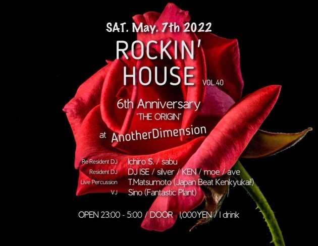 The 6th anniversary of ROCKIN ’HOUSE, which was launched in 2016, will be held all night. Inviting early members Sabu, Ichiro S., VJ Sino and returning to the origin.
