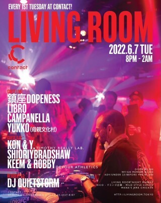 Organized by DJ Quietstorm hosts their regular party on the first Tuesday of every month, LIVING ROOM™ (https://livingroom.tokyo/).
