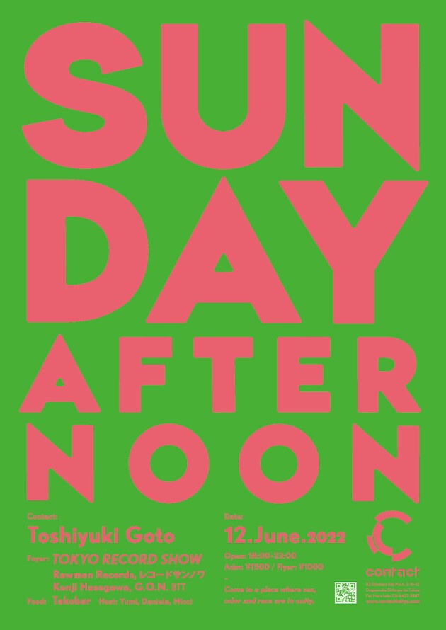 The concept of Sunday Afternoon is that it’s a party that everyone can enjoy and feel at home at regardless of their sex, color or race. For the past 20 years, Toshiyuki Goto has been hosting in NY and Tokyo and is playing an exclusive 5 hour set filled with funky and spiritual grooves. Bring your loved ones, children and family.