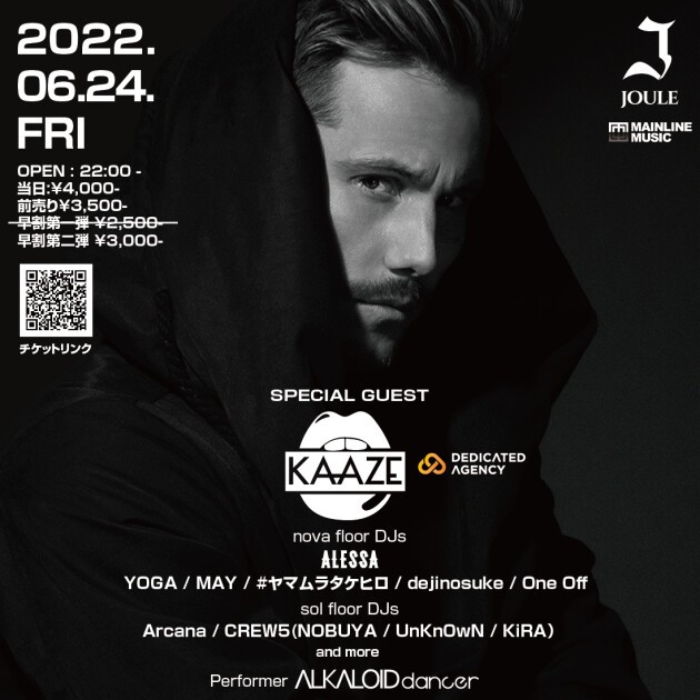 音箱として最前線を走るclubJOULEが『KAAZE』を招聘し、NEW PARTY「NOVA」に飛ぶ鳥を落とすフィーメールDJ/プロデューサー『ALESSA』と