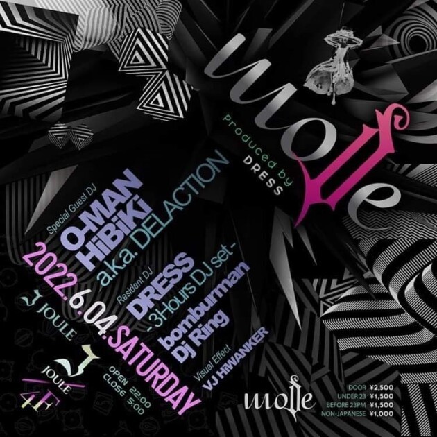 ♢ Special Guest DJ ♢ ♦︎ O-MAN ♦︎ HiBiKi a.k.a. DELACTION ♢ Resident DJ ♢ ♦︎ DRESS -3Hours DJ set- ♦︎ bomburman ♦︎ Dj Ring