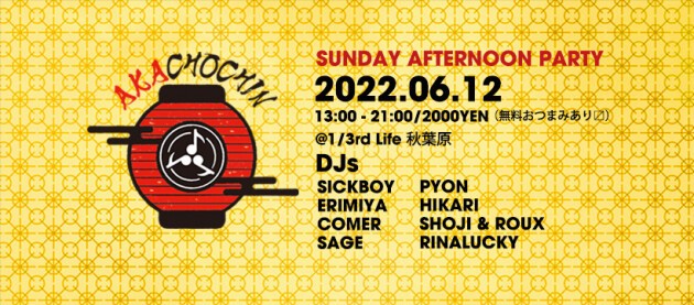 今回はAKACHOCHIN CREWを軸にお酒とおつまみでのんびりとした、本来あるべき姿に戻り皆様をお迎えしようと思います!