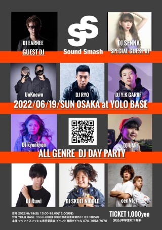 ファミリーも参加できるDJ DAY PARTY 豪華ラインナップで昼間からごきげんなイベント開催! スポンサー企業様ブースや飲食ブースもあり食べて!飲んで!踊って! 盛り上がりましょう!
