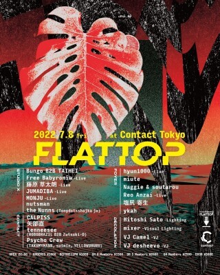 ハウスやジャズ、テクノ、ヒップホップ、はたまたノイズまで…個々が強固な世界観を持ちながらも、FLATTOPという概念で数々の夜で愛好家たちを扇動してきた彼らによるContact最終章。