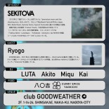 名古屋に拠点に活動するテクノDJ、AkitoとLUTAによるパーティシリーズ。数多くのリリースや著名なフェスティバルへの出演でキャリアを更新し続けているSEKITOVAに加え、京都West Harlemを中心に活動する新星Ryogoがclub GOODWEATHERに初登場。