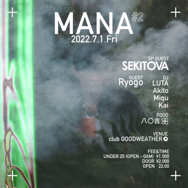 MANA #vol.2" will finally be held at Shinsakae club GOODWEATHER this coming Friday, July 1. MANA is a party series by Nagoya-based techno DJs Akito and LUTA.