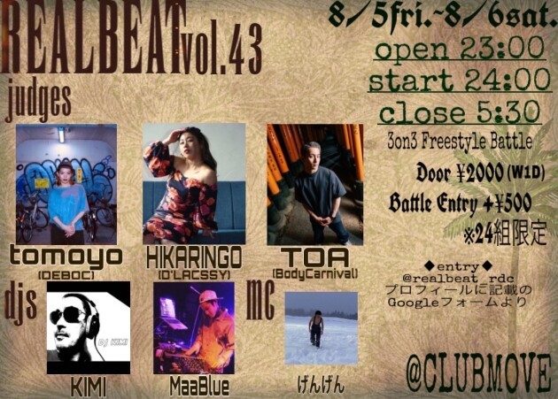 FREEで踊れるDANCERを目指そうという目的から始まったREAL BEATも今回で43回目。