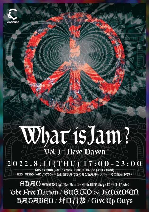 あらゆるジャンルを取り込む“ジャム・バンド”と音楽の即興性をコンセプトにしていることが他イベントとの差であり、最大の特長。ライヴ・セットには、SUGIZO率いるサイケデリック・ジャム・バンドSHAGが4人編成で登場。エレクトリック・マイルスを彷彿させるジャズ・ロック・スタイルが、4人編成により生まれたスペースから新たなジャムに発展する。4月にビルボードライブ東京・大阪ツアーも好評を博したTOKUを中心として今年結成されたばかりのThe Free Nationは、ジャズ、ポップスを横断する幅広い音楽性と即興演奏を披露する。DJセットに、モジュラー・シンセ界を牽引するHATAKEN、キーボードの魔術師坪口昌恭が参加。終盤にはSUGIZOをホストに、出演者全員が入り乱れて参加するジャム・セッションのセットが設けられる。SUGIZOのギター、TOKUのフリューゲルホルン、坪口昌恭のキーボード、HATAKENのモジュラーシンセが即興演奏でどのようなケミストリーを発生させ、この一瞬しか観ることができないマジカルな瞬間を生み出すか期待される。