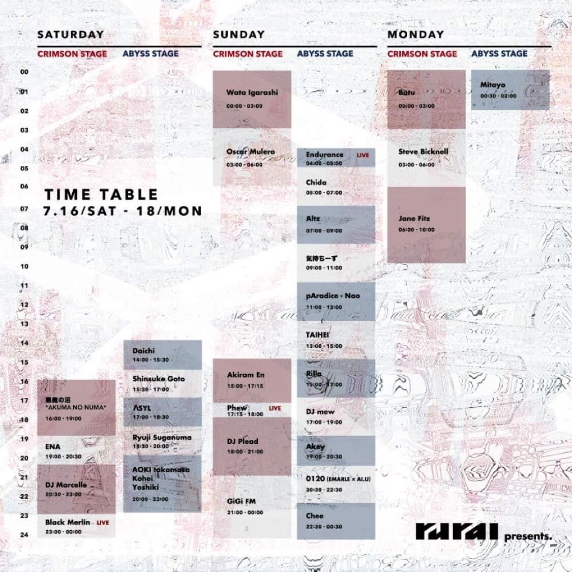 終演 7月18日(月)10:00 / 閉場 11:00