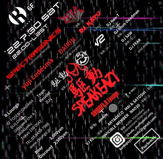 GUEST : SPECTRA SONICS (Grasshopper Records) / ZETA (駆動/jp) / yuji Ledesma (曼陀羅-Mandala-,Brahmasutura Recird) / DAIRIN (-Poi Performance Dancer-曼陀羅-Mandala-) / DJ KATO (K-HOLE)