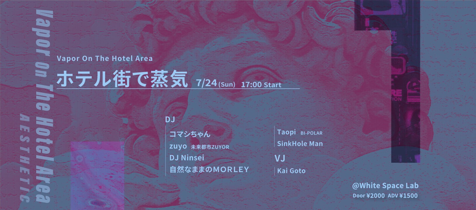 ネオン煌くディープなホテル街、円山町にてVaporwaveオンリーのクラブイベントを開催! 普段コンタクト、ビジョンなど人気クラブで活躍中のDJ, VJがVaporwaveをプレイ。 渋谷クラブ随一の音響とノスタルジーな映像でVaporwaveの世界を堪能できるイベントです。