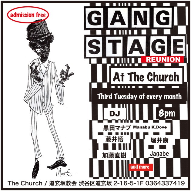 このGANG STAGEはツバキ・ハウスが閉まるまで毎月続けられ、その後Pピカソ、ミロス・ガレージ、Web、音と場所を移しながら、その時代の一番リアルなMODSを意識したクラブとして毎月オープンしていたがOrganBarで数回不定期開催した後休止。