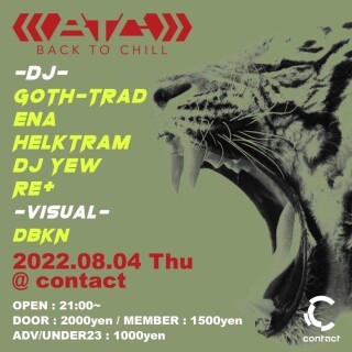 主宰GOTH-TRADがUKのダブステップ・シーンと繋がるきっかけとなった自身のタイトル「Back To Chill」を由来に、2006年に始動した同名のパーティは日本初のレギュラー・ダブステップ・パーティとして話題を呼び、国内のヘッズのみならず、海外のベース・ミュージック・ファンからも注目を集めている。今やダブステップ/ベースミュージック・パーティの最高峰かつ代名詞にもなっており、Contactでの開催もBack To Chillのサンクチュアリー・毎月第一木曜日に深夜の渋谷地下を大きく揺るがす。