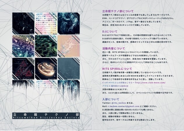 20年以上の歴史を持つDJサークル「立命館テクノ部」によるオールジャンルイベント「The Spiral」。
