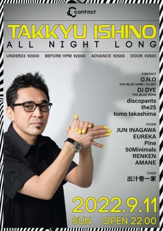 Exactly 1 week left to go until closing. We present you with an all night long set by Takkyu Ishino for his last gig at Contact. He has brought many special moments in 2022 to fans all over the country with a head-on approach, playing at numerous large-scale festivals. Since Contact opened, he’s headlined with the likes of UMEK, as well as being selected as the 1st act for the 3 consecutive weeks resident series ‘Trilogies’. From MAD MAGIC ORCHESTRA, hosted by JUN INAGAWA, to various parties at Contact, his ability to make everyone dance regardless of age surpasses the expectations of the audience. He’ll be working that final magic in Studio X, pulling us away from reality with vivid, powerful, and delightfully emotional sounds during the height of the peak time.