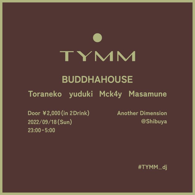 影響を受けたカルチャー・育ってきた世代・そしてクラブへと連なる足跡さえ異なるも、シーンの時好に傾倒しすぎない独自のフリークな見地で音楽(Techno, House, Drum’n’Bass etc…)のエッセンスを追い求める4人が、各回毎に世代を超えた異なるゲストをお呼びし、共に嗜好を重ね合わせていくパーティ「TYMM」がスタートする。