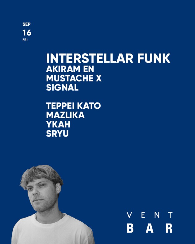 共演には、レフトフィールドテクノやアヴァンギャルドなどをフロアマナーに従ってミックスしていくエッジーなダンスセットで聴覚と身体感覚を揺さぶり世界中のディガーやドープなパーティーヘッズから厚い信頼を得ているAKIRAM EN、ShigeoJD(ex.スケボーキング)とDJ MAAR(ex.DEXPISTOLS)によるFake Eyes Production における中核的存在であり、ここVENTでもATOM TM、RED AXES、石野卓球、DJ NOBUなど名だたるアーティストと共演を果たしてきたMustahce X、AGORIAやHVOBなど海外アーティストの来日サポートも行い精力的にプレイするSIGNAL が登場する。