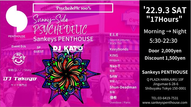 【 Sunny Side PSYchedelic Vol.2・9.3SAT ☀→☽ After Hours~NIGHT "17H"@SankeysPENTHOUSE 】