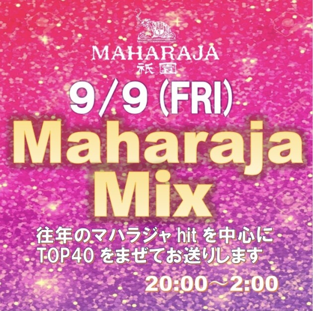 往年のマハラジャHitを中心に人気のTOP40をフューチャーしてマハラジャ祇園でのディスコでお送りします!
