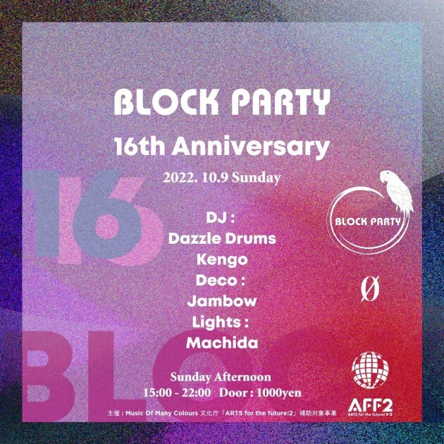 沢山の音楽好きとBlock Partyチームに支えられて16年。出会いと再会の繰り返しを16年。感謝の気持ちをこめて16年分の想いを表現してお待ちしております!