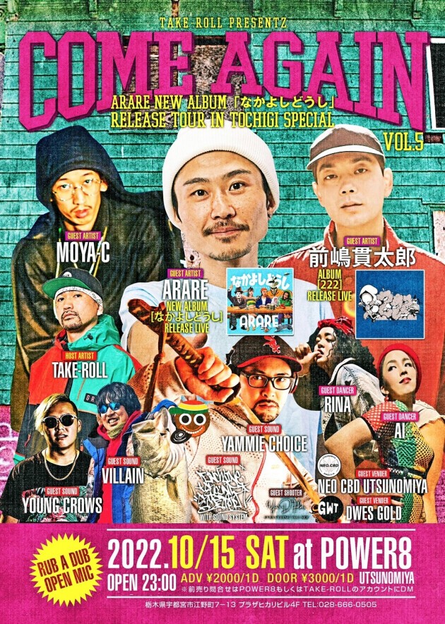 COME AGAIN vol.5 ARARE NEW ALBUM『なかよしどうし』RELEASE TOUR IN TOCHIGI SPECIAL 前嶋貫太郎 ALBUM『222』RELEASE LIVE