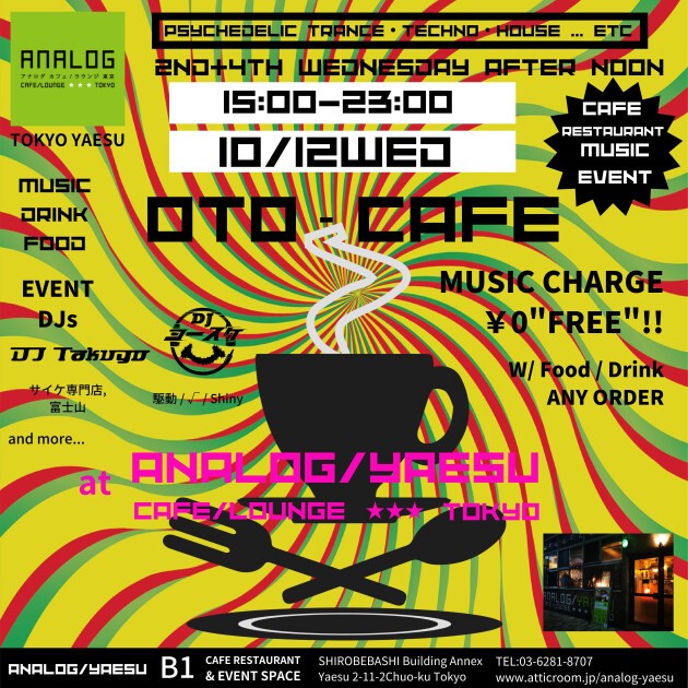 #otocafe #インストアイベント #instoreevent #レストランイベント #restaurantevent #psychedellic #psychedelictrance #サイケデリック #サイケデリックトランス #psyche #サイケ #techno #テクノ #trance #トランス #house #ハウス #dj #tokyo #東京 #club #アナログ八重洲 #analogyaesu #アナログ東京 #analogtokyo #アナログ #analog