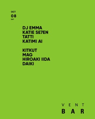 1985年よりキャリアをスタートしGOLD、YELLOWをはじめとする数々のベニューでレジデントとして活躍、95年から発売され日本を代表するミックスCDとなった『EMMA HOUSE』は過去に19枚のリリース、また日本発のアシッド・ハウス『ACID CITY』を始めとする数々のリリースと共に、常にダンスフロアとハウスミュージックを中心に新しい音楽を最高の技術でプレイし続けるDJ EMMAが久々にVENT BAR へ登場!