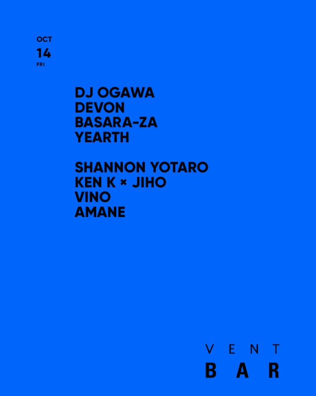名古屋を拠点に国内の数多くのベニューでのゲスト出演や、アジア圏等の海外にも幾度となく招聘され多くのクラウドを熱狂させてきたDJ OGAWA。世界ランキング常連の人気を誇りSashaやJohn Digweedからもサポートを受けるアルゼンチンの至宝 HERNAN CATTANEOからの信頼も厚く、彼のサポートのもと行われた南米ツアーでは主要4都市で実に1万人以上を集客し南米でも大きな話題を呼んだ。名古屋を拠点としながらも世界中に多くのファンを持つDJ OGAWAが久々にVENT BARへ登場。ROOM1には、メロディックかつ浮遊感と疾走感あるグルーヴでフロアを揺らすDJ/トラックメイカーのDevon、代官山Débrisで開催されているパーティー“Deeep!”を主宰するYEARTH、2000年代始めに東京を拠点にALPH ZEN名義でキャリアをスタートし、国内外のレーベルから楽曲のリリースも行うBasara-ZAがラインナップ。