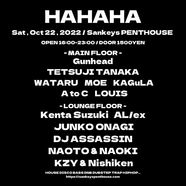 東京カルチャー発信地・原宿に位置するQ Plaza HARAJUKU 最上階『Sankeys PENTHOUSE』にて2022年10月22日(土)に『HAHAHA』大開催決定!