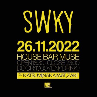 ''SWKY'' 2022/11/26(SAT) OPEN 18:30 CLOSE 23:00 ENTRANCE FEE ¥1,000(1 DRINK) HOUSE BAR MUSE 大阪府大阪市北区西天満6-2-14 マッセ梅田ビル2本館