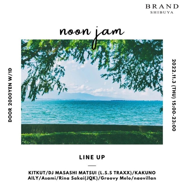 はじまりのルーツ、増殖するカルチャー。ハウス、テクノの解釈を深めるほど、ジャンルの壁は崩壊する。渋谷を中心に活躍する旬なDJ達が今かけたい曲(JAM)を、詩的にフロアに届けるデイパーティー。音楽的解釈とDJスタンス…どれをとっても被らないDJ達が、それぞれの切り口でグルーヴを表現する。