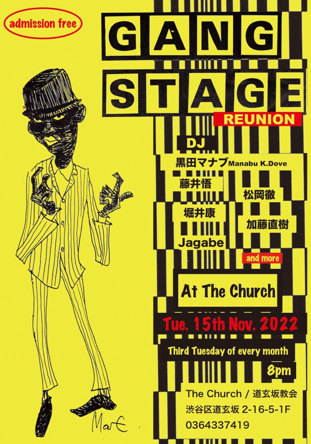 このGANG STAGEはツバキ・ハウスが閉まるまで毎月続けられ、その後Pピカソ、ミロス・ガレージ、Web、音と場所を移しながら、その時代の一番リアルなMODSを意識したクラブとして毎月オープンしていたがOrganBarで数回不定期開催した後休止。