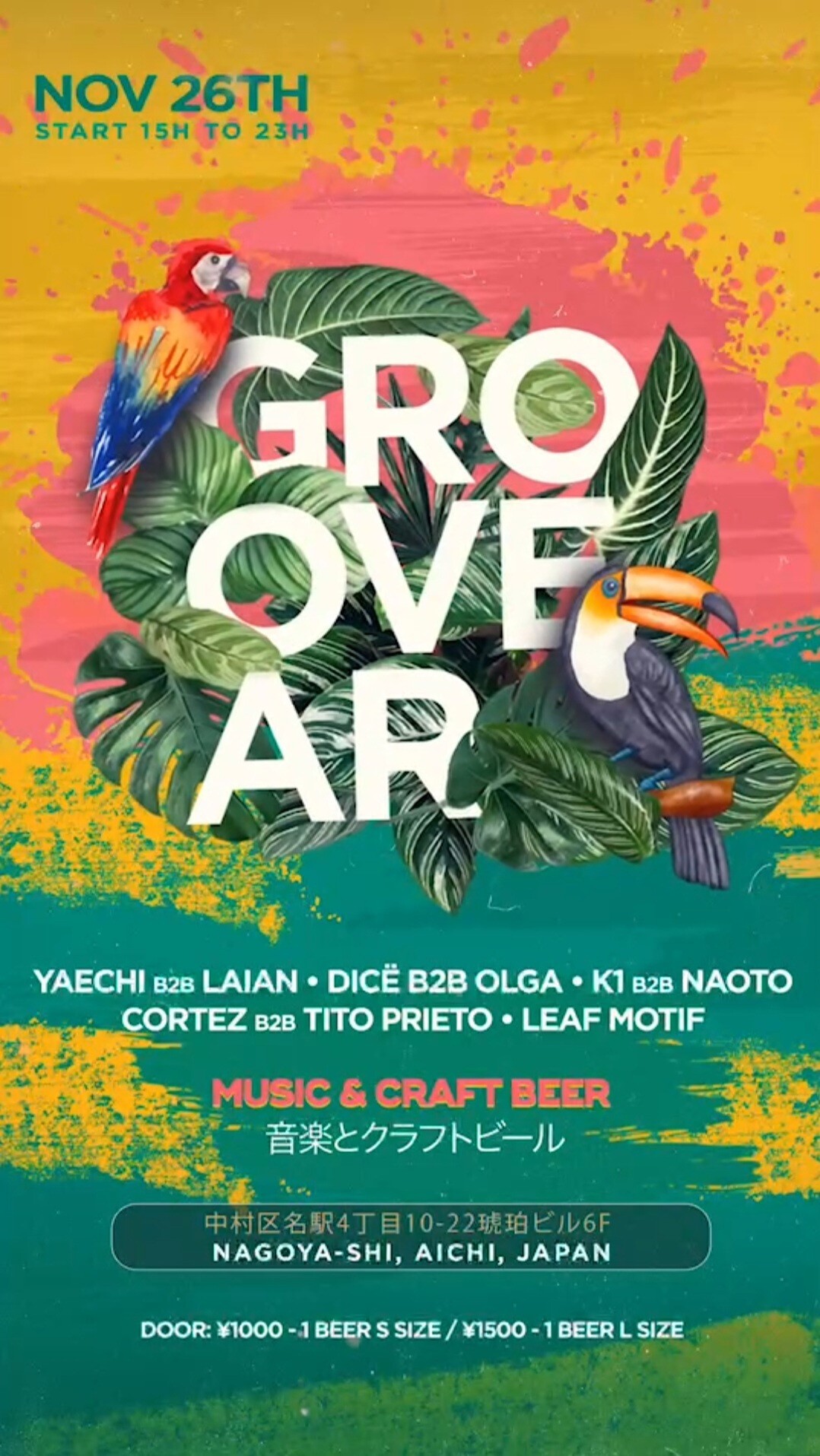 名古屋の中心地、Craft Beer BINGEで、ユニークなクラフトビールと美味しい焼き鳥、そしてGroovearのグッドバイブスでゴージャスなオープンエアーのパーティーをお届けします!