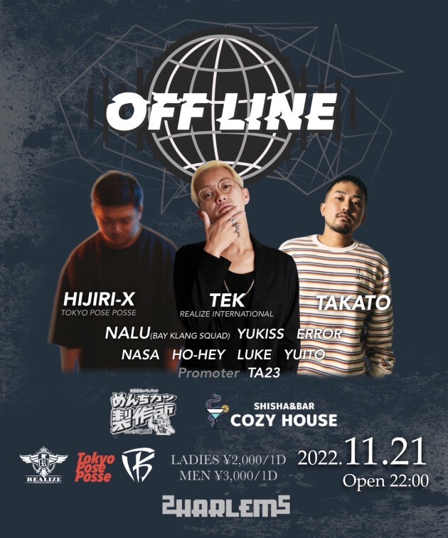 DJ: TEK (REALIZE INTERNATIONAL), HIJIRI-X (TOKYO POSE POSSE), TAKATO, NALU (BAY KLANG SQUAD), YUKISS, ERROR, NASA, HO-HEY, LUKE, YUITO