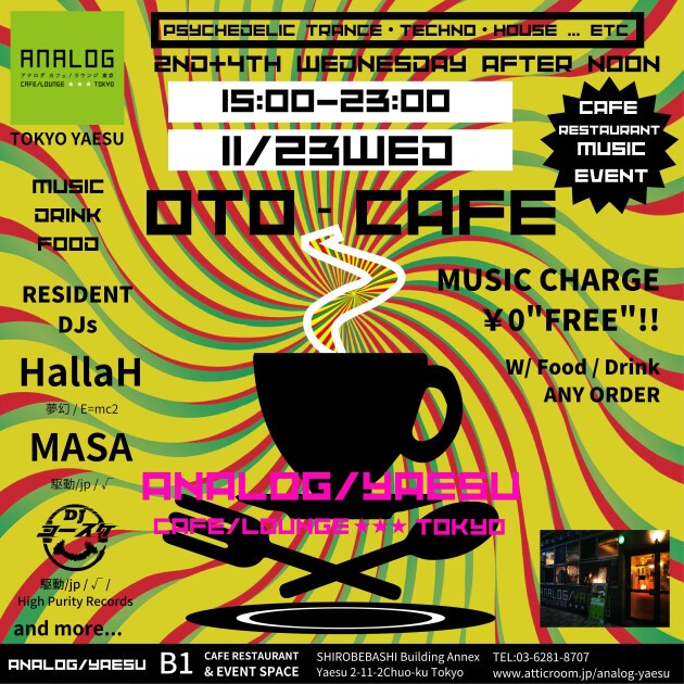 【 OTO-CAFE Vol.4・11.23WED祝 EVENING to NIGHT @ Analog Yaesu | Tokyo Station 】