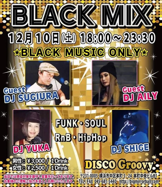 毎月第2土曜日は【DJ SHIGE&DJ YUKA】による黒音オンリーの夜に静岡よりDJ SUGIURA 、DJ AILYをゲストに迎えさらに黒くお届けします。