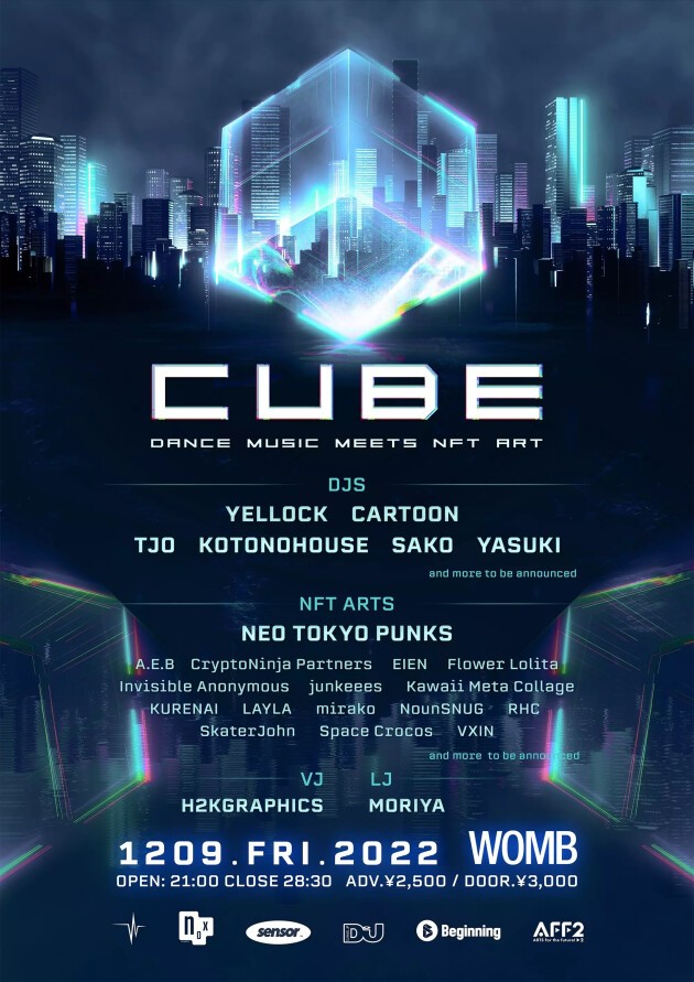 ULTRA JAPAN などに名を連ねる国内トップ DJ 陣と、世界市場でも名を轟かす NFT クリエイターのコラボイベント CUBE が、12/9(FRI) 渋谷 WOMB にて初開催。