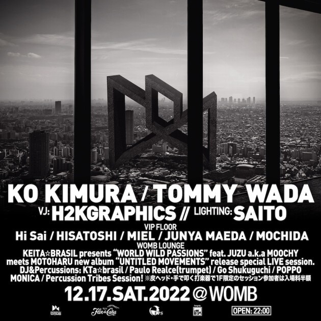 今月の SESSION は、前回の出演でも評価の高かった KO KIMURA と TOMMY WADA。そして VJ には常に進化している H2KGRAPHICS、LIGHTING には SAITO を迎えて開催する。