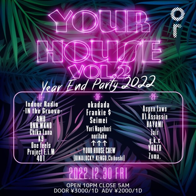 2022年夏、竹芝BANK30にて始動したHouse Musicパーティー『YOUR HOUSE』が本年を締め括る、YEAR END PARTY を開催!