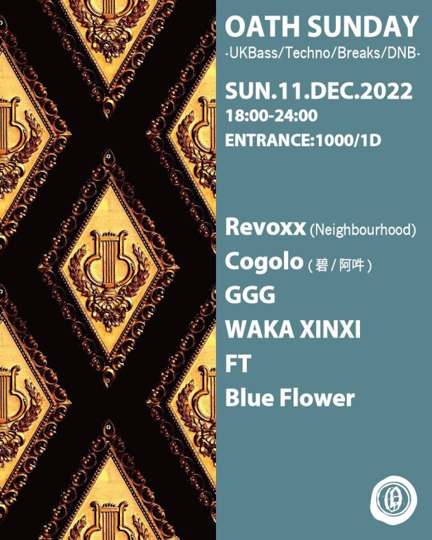 OATH SUNDAY -UKBass /Techno /Breaks /D'N'B- SUN.11.December.2022 18:00 ~24:00 1.000yen /1drink Revoxx (Neighbourhood) Cogolo(碧/阿吽) GGG WA