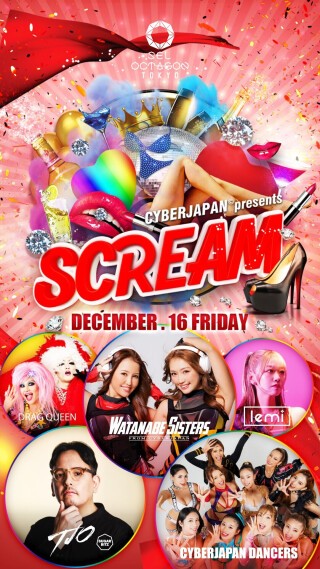 KANAE & KOZUE の美人姉妹による DJ ユニット WATANABE SISTERS、そして CYBERJAPAN のダンサーたちも総出演、更にドラァグクイーンやテキーラガールも登場し、年末にピッタリな賑々しいイベントに!!
