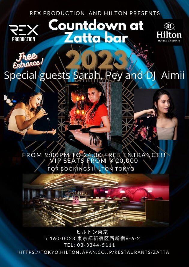 VIPテーブルご予約はこちらまでお願い致します. https://tokyo.hiltonjapan.co.jp/plans/restaurants/event/zatta-countdown-party