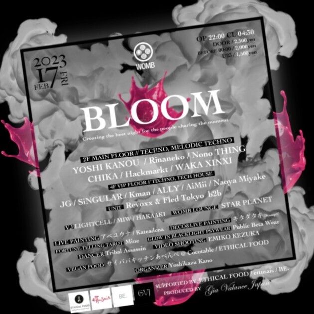 同じ時代、同じ時間、同じリズムを感じる事で世界中の誰もが繋がる事が出来るをコンセプトに「繋がる絆」そして「才能の開花」を目指し2019年に立ち上げ音楽の境界を自由に行き来しながらも上質かつ先見性に富んだキュレーションでリピーターを増やし WOMB、CONTACT にて開催されてきた、東京と世界へ繋げるプロジェクトイベント BLOOM が、再びWOMB にて開催決定。