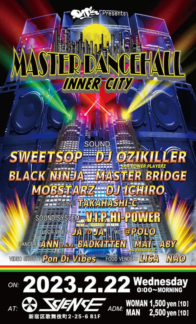 SELECTORのSPINするDANCEHALL REGGAEで DANCERがDUTTY WINE LIKE MAAAAAD! V.I.P. HI-POWER SOUND SYSTEM出動! 新宿が揺れまくる! 最強の最狂の大爆音でGWEY BABYLON!