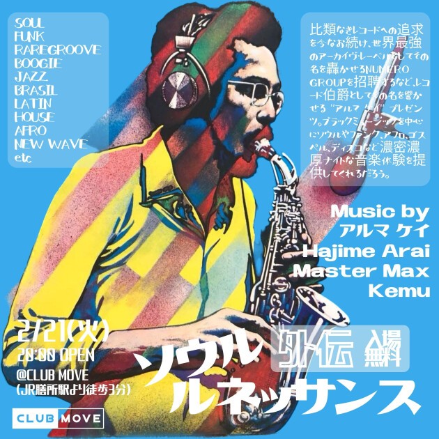 比類なきレコードへの追求を今なお続け、世界最強のアーカイヴ・レーベルとしてその名を轟かせるNUMERO GROUPを招聘するなど、レコード伯爵としてその名を響かせる "アルマ ケイ" プレゼンツ。ブラックミュージックを中心にソウルやファンク、アフロ、ゴスペル、ディスコなど濃密濃厚ナイトな音楽体験を提供してくれるだろう。