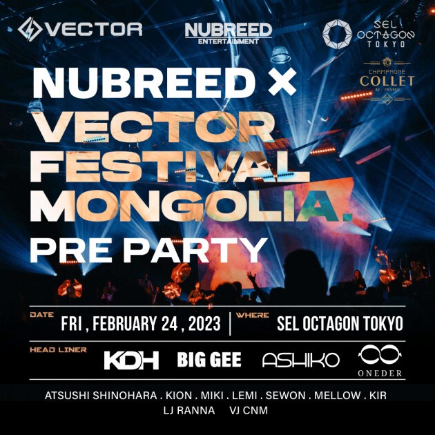 韓国発のダンスミュージックフェスティバル”Vector Festival”が 2023年3月31日、4月1日の2日間モンゴルで「Vector Festival in Mongolia」として行われるフェスティバルのプレパーティをOCTAGONにて開催!「Vector Festival in Mongolia」に出演する”ASHIKO”,”BIG GEE”, “ONEDER”がプレパーティに登場。日本、韓国、モンゴルの3カ国のアーティストが出演するグローバルなパーティとなります。